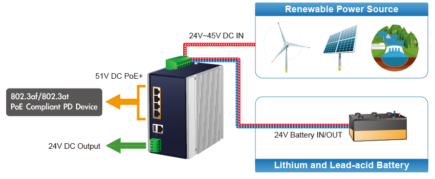 A great option for remote EV station is to implement PLANET Renewable Energy PoE Network Solution. PLANET is the first in the industry to implement renewable energy technology into its network solutions. This enables the network to achieve power independence as well as reduce carbon emissions for a more sustainable network solution.