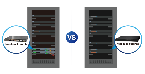 The AVS-4210-24HP4X AV Switch is the ideal network solution to streamline devices for optimal media development operation