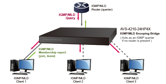 • IGMP Snooping for IPv4 & MLD Snooping for IPv6 are ready upon setup