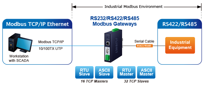• Economical Solution for Industrial Modbus TCP/RTU/ASCII Network Integration