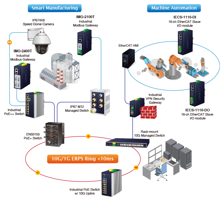 PLANET Industrial Automation solution helps realize IIoT-based connectivity by providing a variety of products to flexibly and efficiently transform traditional industrial devices into TCP/IP transmission and management.