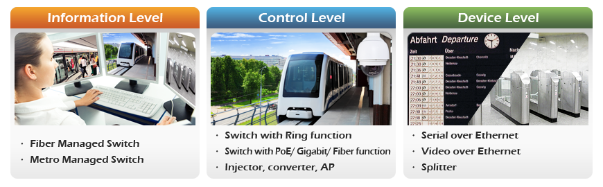 To satisfy the network connectivity needs of industrial-grade applications where information level, control level and device level are applied, PLANET provides the most complete Industrial Ethernet Solution consisting of Rack-mount and DIN-rail Managed Ethernet Switches, 802.3bt Power over Ethernet Equipment, Long Reach Power over Ethernet/Coaxial, Flat-type Ethernet, EN50155 Ethernet Switches, Cellular Gateways, Security Routers, and Fiber-optic Network Devices.